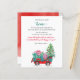 Budget Söt julgran i röd vagn Vi har flyttat Flyttmeddelande Julkort med Röd Vintagebil och Dekorerad Julgran och Julpresenter