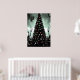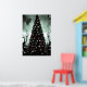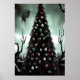 Ett stort dekorerat Julgran i skräckskogen, två små svarta träd bredvid Julgran på båda sidor. Det här är en AI-skapad konst.