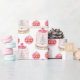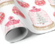Söt rosa och Julgran med röd vattenfärg i en snö-glob och träd ornament i mönster som omger pappra helgdag.