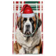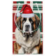 Hundälskare kommer att älska att få eller ge denna söta och roliga julklappspåse med en bedårande Saint Bernard hund i en tomtehatt, på en röd och grön säsongsbetonad rutig bakgrund.