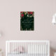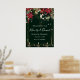 Elegant vintergrönsak Övningsmiddag Välkomstskylt. Julkomposition av julstjärna, gröna järnekblad och röda bär, tallkotte och ljust krans ställd mot en mörkgrön bakgrund.