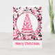 Ett julkort med en bakgrund av rosa och svart färgstänk. Illustration av ett Julgran med rosa färg och färgstänk dekorationer med matchande stjärna och träd. Grund lyder "God jul". Anpassa insidan med texten.