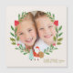 Framsida med krans och söt tomte - baksida med Söt julmönsterdesign på baksidan med handritade natursymboler snömän, renar, järnek, snö,