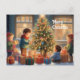 Julgran med presenter och barns glädje vykort
