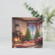 En personlig julkort med ett dekorerat rum som är komplett med ett Julgran, en kamera och lager hängande från garnhinnan.