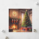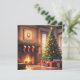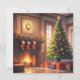 Julgran med presenter och en eldstad julkort