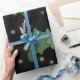 Julgran med stjärnor på svart presentpapper