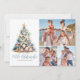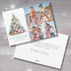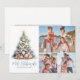 Julgran Mele Kalikimaka Strand Foto Holiday Card. Fira julen med en kustnära känsla med detta horisontella julkort, med plats för tre familjefoton för att göra det riktigt personligt. Perfekt för de som älskar havet eller bor på tropiska destinationer som Hawaii, Florida eller Bahamas, har denna design ett fantasifullt julgran konstruerad av skal, sjöstjärnor och koraller i lugnande teal och blå nyanser. Det akvarellfärgade trädet vilar på en sandig bas, krönt med en sjöstjärna för en festlig strandnära touch. Under står 'Mele Kalikimaka', God Jul på Hawaiian. En blandning av rena typsnitt och elegant handskrift ger en avspänd men ändå förfinad känsla till din julhälsning. Välj mellan ett tryckt kort eller en digital