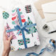 Julgran. Modern blå, röd och rosa mönster Presentpapper