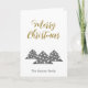 Modern Julgran Modern Minimalist Family Helgdag Card. Tre enkla grått Julgranar med vitt bollar. Texten God jul finns i ett trendig-skript. Anpassa med texten.