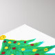 Design innehåller en teckning av Julgranar skapat med vatten-baserade färger.