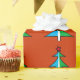 Julinslagning papper som dekoreras med Julgran-design.