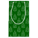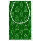 En presentpåse byggt med ett vitt Julgran mönster på mörk grönt bakgrund. Anpassa den mörk grönt bakgrunden färg, mönster storlekare bland andra alternativ.