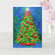 Ett utkast av en lush grönt Julgran mot en grov grönt/blå bakgrund.