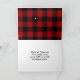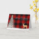 Vit jul gräs träd med guld klockor, hjort och en fågel med vinterhalsduk på röd och svart lumberjack som pläderar för God jul och gott nytt år. Text kan redigeras.