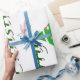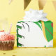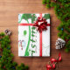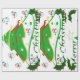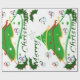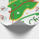 Den här designen har en grönt julgran med rött, guld och vitt band och julklapp bollar som dekorerar träd. Snögubbar och hully dekorera den här utformningen. "God jul" är tryckt på detta mönster i grönt och vitt. Den här pappra omslagsinslagningen finns i stilar och färgad i olika omgångar och i gräns.