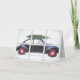Julgran på bil med hund i snöfönster kort