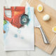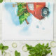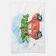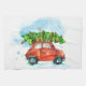 Julgran på rött bilköldhandduk - Köksdiskhandduk med en ikonisk bild av att ta hem en Julgran ovanpå familjens bil. Den lilla röda bilen behållor det röda och grönt temat. Även flingor från blå himmel och snö är i denna koniska utformning. God jul från KNS Gear och tack för att du shoppade vårt KNS-julhus!