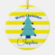 Byt ut er önskemål med denna moderna juldesign. Med det traditionella säsong-färg användor den här utformningen gult och blått. Det blå trädet har dekorationer. Ändra bilden för ditt eget foto. Modern och enkel jul hälsning.
