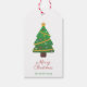 En sober julklappsetikett med en julgran och dess kransar, dess kulor och dess stjärna högst upp. Perfekt för ditt företag, du kan också använda den till dina julklappar till din familj och vänner.