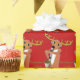 Papper dekorerat med tecknad bild på ren som spelar saxofon.