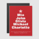 namn med rött och vitt anpassningsbar i julgran, ett modernt magnetkort som anpassar det med din egen familj namn och fullt