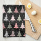 Julgran Rosa och Grönt med svart bakgrund Kökshandduk