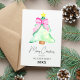 Avslöja den förtrollande charmen under semestern med detta julkort med vattenfärgdesign försedd med rosa band och julgran. Detta kort kombinerar perfekt festlig charm med konstnälig elegans, med en detaljerad vattenfärgsillustration av en julgran dekorerad med ett stilrent blått band. Den högkvalitativa tryckningen framhäver de invecklade vattenfärgsdetaljerna och skapar ett tidlöst och sofistikerat uttryck för säsongens anda. Det som gör detta kort unikt är dess möjlighet till personalisering - ge det en personlig touch genom att lägga till familjenamnet, året och en önskad hälsning. Denna unika egenskap förvandlar kortet till en skattad souvenir, vilket gör det till ett idealiskt val för dem som söker ett genomtänkt och anpassat sätt att skicka varma julhäls