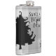Drickskolv med svart och vit juldesign. Ett svart träd, med glatt grenar, och ett utspridande av snöflingor, är utformningen. Kunkerad roligt justeras mot högerna framtill. Exempelformuleringen är "Santa's Helper Brew". För dem som kanske behöver lite plocka-upp medan de hanterar julhelgens stressa.