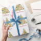 Söt julomslutning papper för alla dina presenter under julhelgen. God jul-skript med enkelt dekorerat helgdag träd.