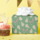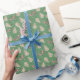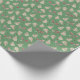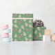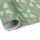 Denna julklapp har en mönster av vita julgran-kakor, rödvita, randiga pepparmynta och små röda stjärnor mot gröntens bakgrund.