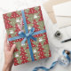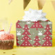Backa dina gåvor från helgdag med säsong inslagna pappra med röd Julgran, julklapp och snö på gröntens bakgrund. Er presenter kommer att se extra tillsammans under träd.