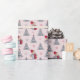 Helgdag som är papper med snöflingor, nallar och Julgranar på sötens rosa.