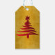 Julgran Stencil Red på Guld Presentetikett
