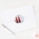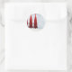Röd Julgranar på en snöbakgrund. Underbara klistermärken för julklappar, kuvertförseglingar, dekorationer för gåvor m.m. Lägg till text i den här designen om du vill.