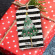 En julgran på svarta och vita ränder och gyllene prickar och din hälsning på dessa julfavorit-taggar.