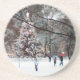 Denna underlägg har ett vackert Julgran i mitten i fält under ett snöfall. En festlig firande under säsongen.
