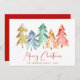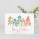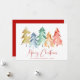 Ett modernt konstnärligt kort för helgdag som innehåller abstrakt vattenfärger från gräs i guld, rött, blått, grönt och orange, "God jul", är skrivet i ett skript med träden rött och ditt namn och året.