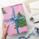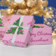 Elegant designade vattenfärgen Julafton träd mönster med rosa prydnadsämnen och bättre bakgrund för ro färg. En elegant med enkla vattenfärger i grönten skapar klassisk och snygg illustration. Anpassa den med God jul, Glad helg eller mottagarens namn.