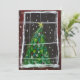 Julgran Vid Fönster På Natten Snöar Ljus Julkort