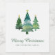 Den här eleganten har vin-etiketten tre mjukt färgade träd, som var och en ger en känsla av lugn och säsong charm. Framsidan är försedd med "God jul" i ett snyggt skript, vilket gör att designen blir lite sofistikerad.