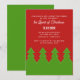 Inbjudan dina vänner och din familj till din Julfest med dessa enkla inbjudningar och eleganter med Julgranar i rad mot röd bakgrund.