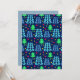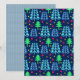 Grönt, blått och turkotiskt dekorativt Julgranar med gult och rött snö mot mörk blått bakgrund.