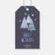 Den här presentens märkre har en vacker arrangemang av stiliserat Julgranar och snöflingor i skuggor av himlar blå och skiffer på marinblå bakgrund. Glad helg och en mall har angetts som tillval för att lägga till ditt namn och/eller annan text. Sök i ID861 via ID864 om du vill se fler alternativ för färg och andra produkter i den här moderna juldesignuppsättningen.