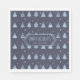 Den pappra napkin har ett mönster av stiliserat Julgranar och snöflingor i skuggor av himlar blå och skiffer på marin blå bakgrund. Glad helg och en etikett har angetts som tillval för att lägga till ditt namn och/eller annan text. Sök i ID861 via ID864 om du vill se fler alternativ för färg och andra produkter i den här moderna juldesignuppsättningen.