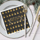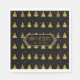 Denna pappra napkin har ett mönster av stiliserat Julgranar och snöflingor i skuggor av guld mot svart bakgrund. Glad helg och en etikett har angetts som tillval för att lägga till ditt namn och/eller annan text. Sök i ID861 via ID864 om du vill se fler alternativ för färg och andra produkter i den här moderna juldesignuppsättningen.