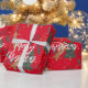 Denna färgstarka tecknad-stil Julgran mönster har en röd anpassade. Jul, träd, juldjur och andra julsymboler.