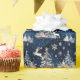 Pappra i en jultomtskägnad mönster i Julgranar, renar och snöflingor, mot en mörk blått, stjärnbakgrund