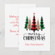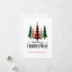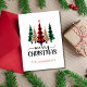 Julkort med rött och svart rutmönster och gröna och svarta buffelrutmönster julgranar på framsidan med plats för ditt namn. Baksidan av kortet har ett meddelande som du kan redigera.