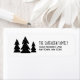 Den lämnat delen av denna moderna skandinaviskt inspirerade returadressetikett för helgdag har tre handdragna svarta Julgranar på vit bakgrund. Anpassa högerna med familjens namn i svartvitt och adress i sans serif.